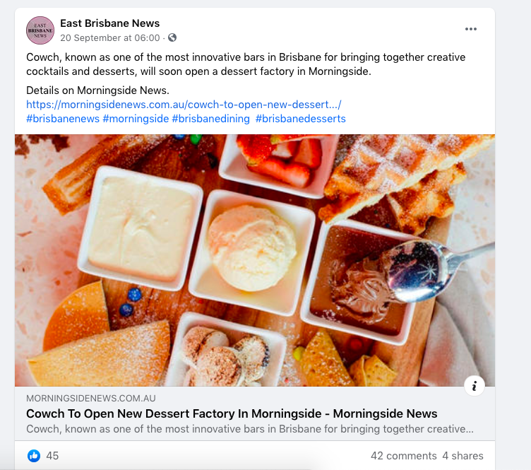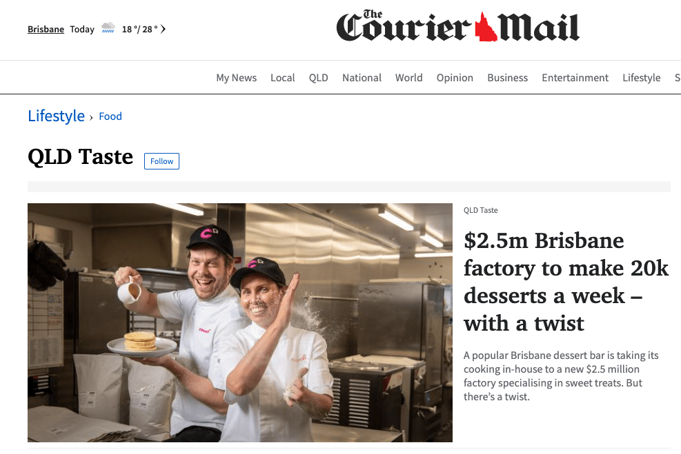 Direct link to the Courier Mail story: https://www.couriermail.com.au/lifestyle/food/qld-taste/mammoth-dessert-factory-to-open-in-morningside/news-story/dc86556c81e810b93db252ee7bd74d20